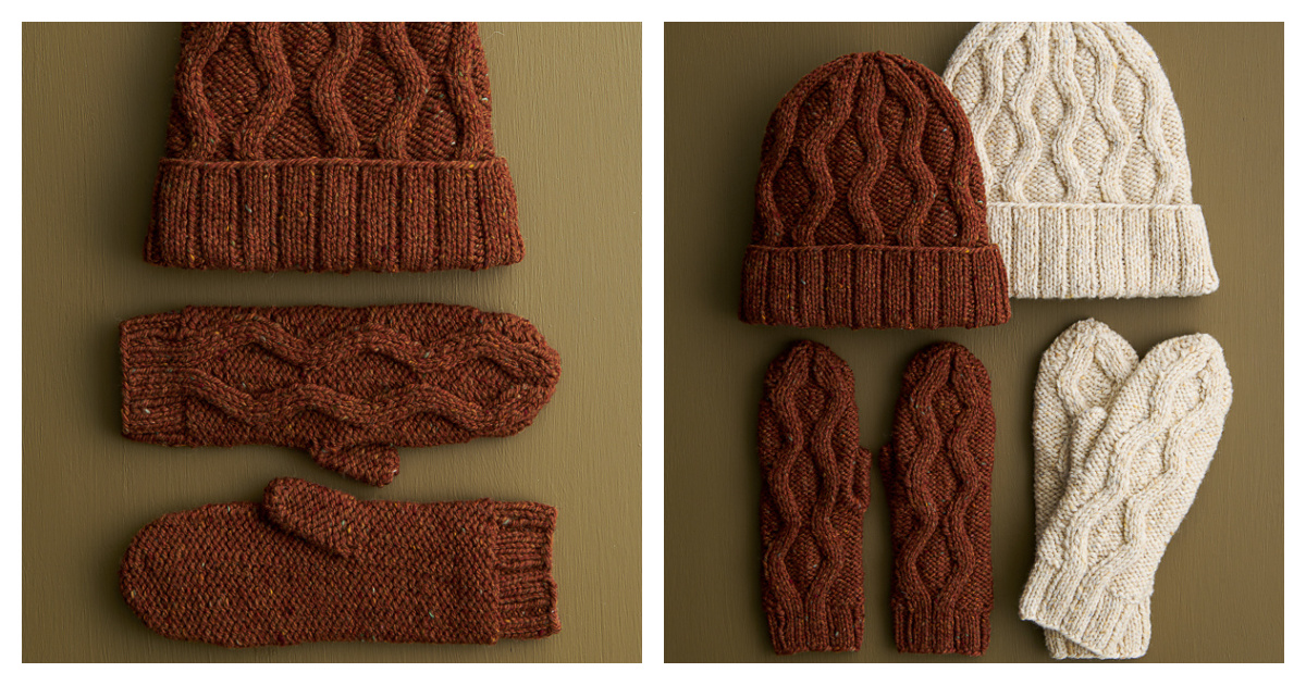 Fox Trail Hat and Mittens Set Free Knitting Pattern