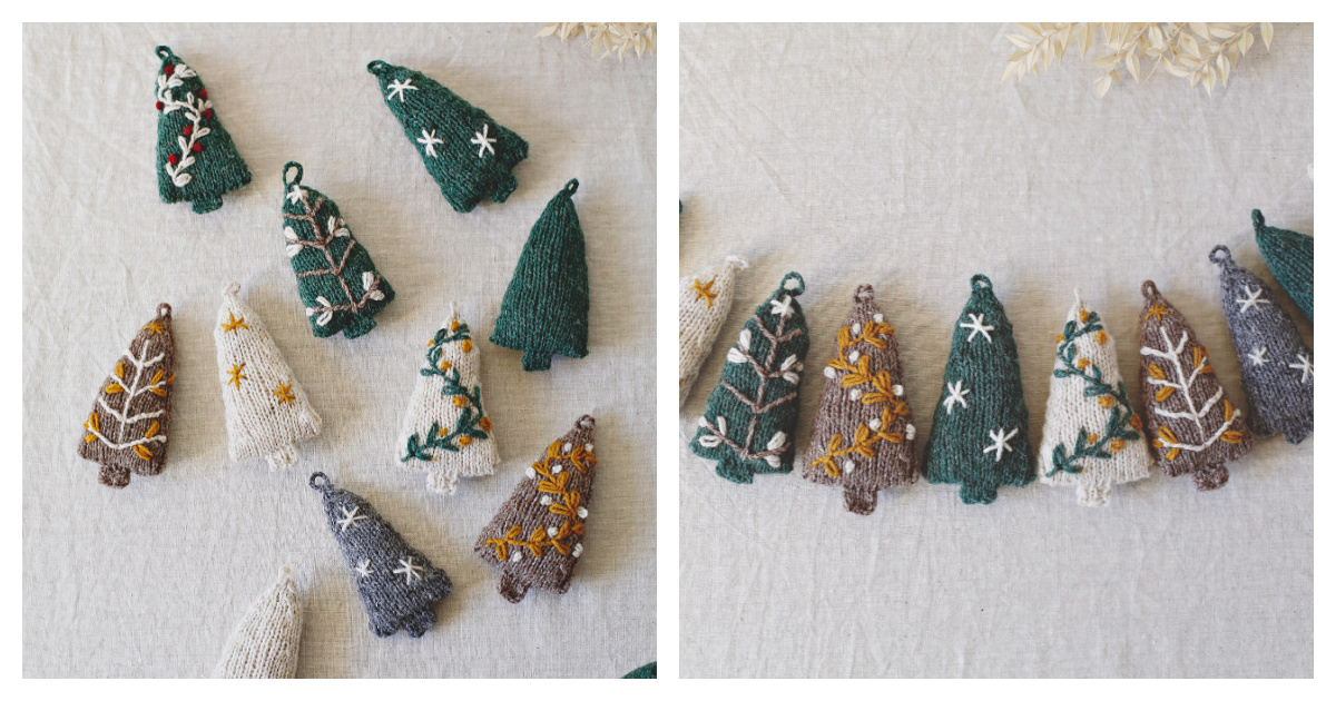 Cosy Christmas Trees Ornaments Free Knitting Pattern