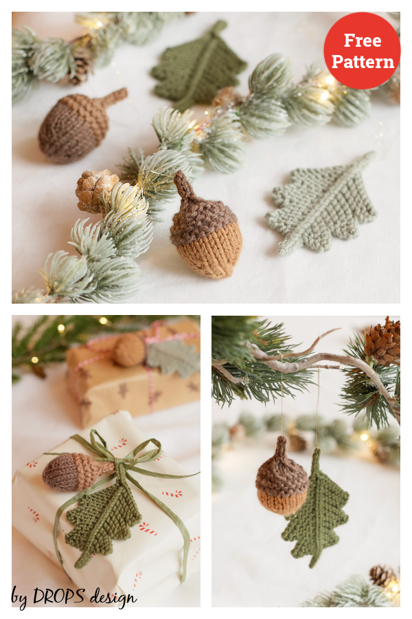 Acorn and Oak Leaf Christmas Decoration Free Knitting Pattern