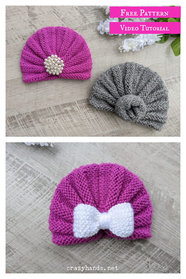 Baby Turban Hat Free Knitting Pattern and Video Tutorial
